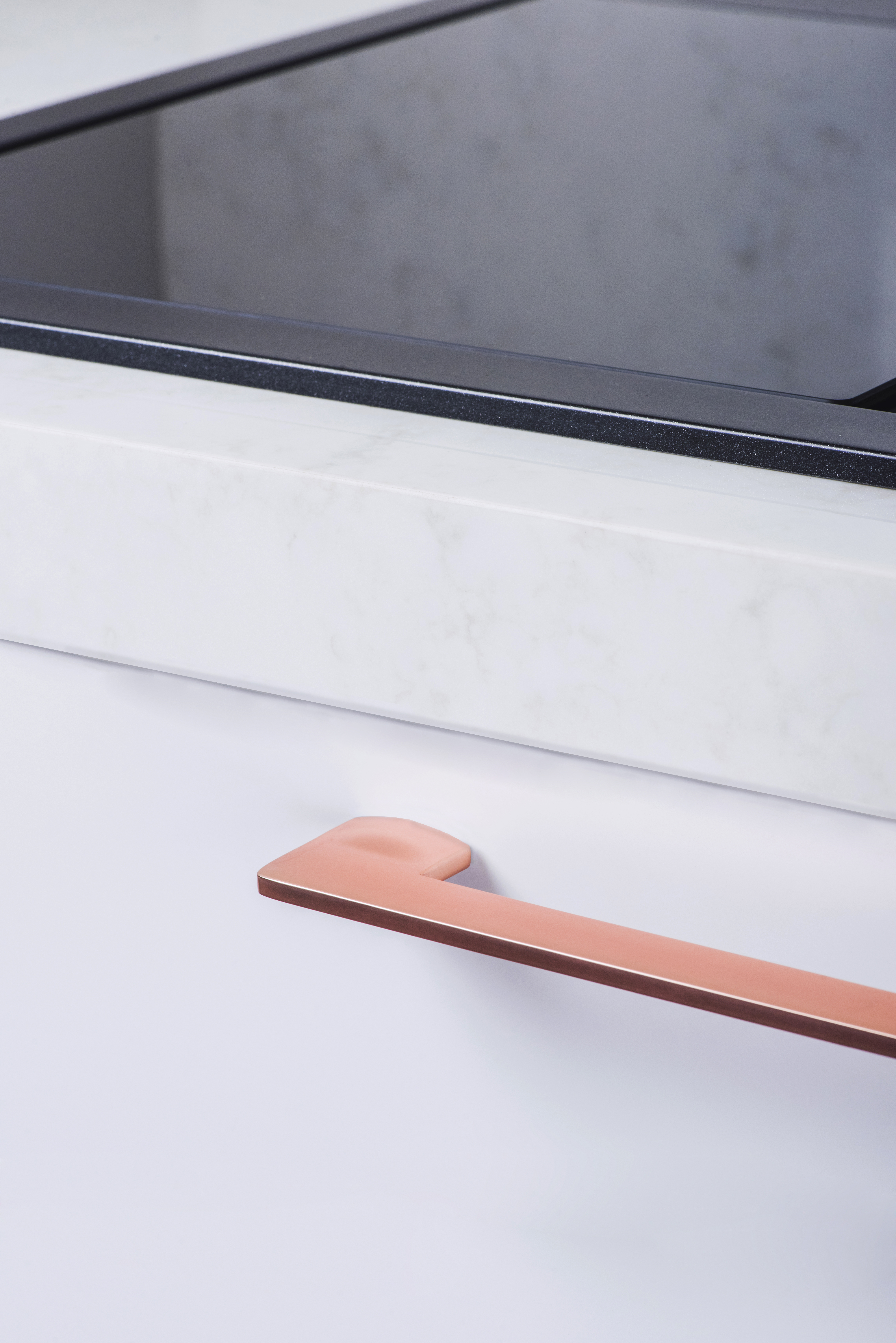 Slim es un tirador de esencia mínima y atemporal, con geometría lineal de cantos redondeados que resulta sólido y resistente a la vez. Está concebido para integrarse en todo tipo de ambientes de cocina y en especial en los que requieren una estética discreta y depurada que valora el detalle y la calidad del producto. Su fabricación por inyección de aluminio implica en el desarrollo del diseño el estudio de las formas para optimizar el proceso y resistencia de la pieza, así como asegurar la fácil extracción del molde teniendo en cuenta la posición final de la pieza y su uso